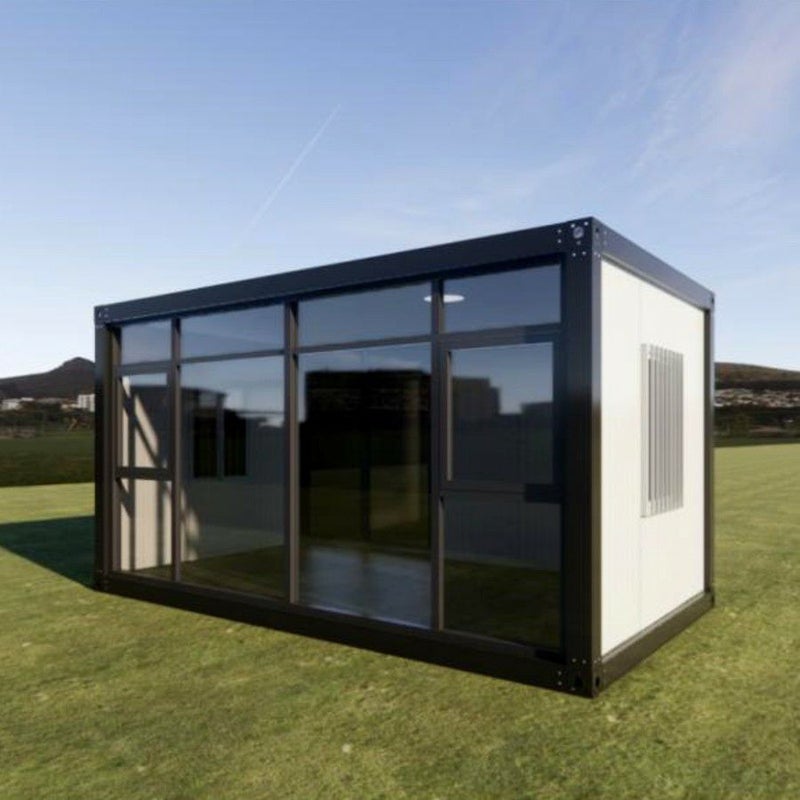 標準タイプのユニットハウスに一面ガラス張りにしました。