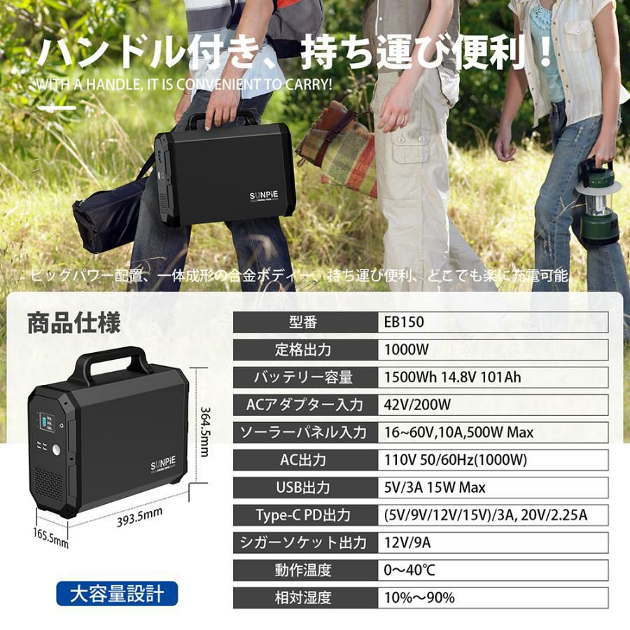 他の画像を見る ポータブル電源 大容量 1000w 1500wh 当店特別価格 ¥ 152,529 税込 ータブル電源 大容量 1000w 1500wh キャンプ 業務用 パススルー対応 正弦波 非常用電源 PSE認証済み 3年半保証 hawks202110 カートに入れる お気に入りに登録する