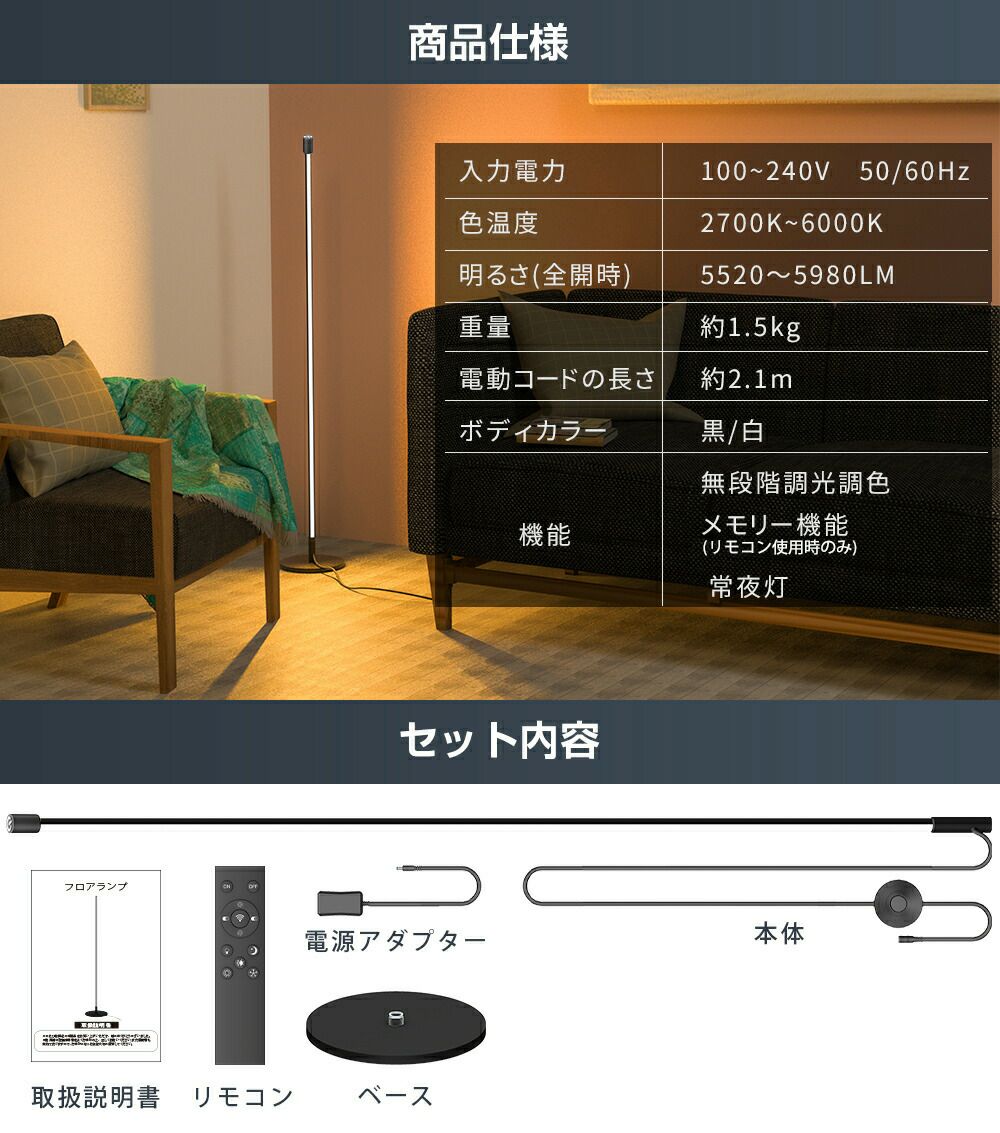 他の画像を見る スタンドライト 当店特別価格 ¥ 7,871 税込 スタンドライト 北欧 照明 フロアライト led 間接照明 無段階調光調色 フロアスタンド 省エネルギー 居間用 読書 電気スタンド カートに入れる お気に入りに登録する