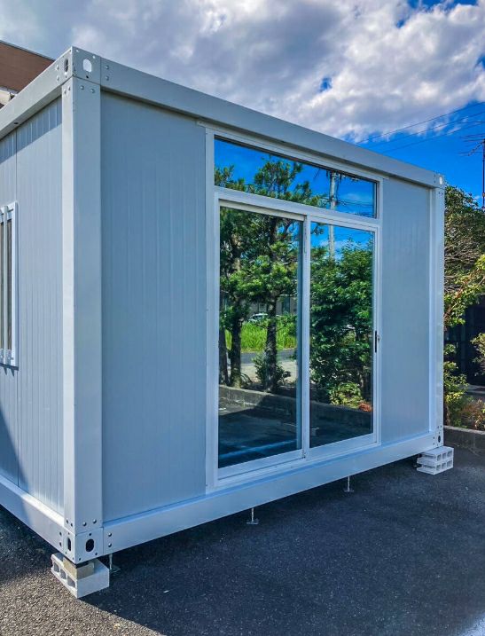 標準10m2タイプのユニットハウスにガラスドアを取り付けました。