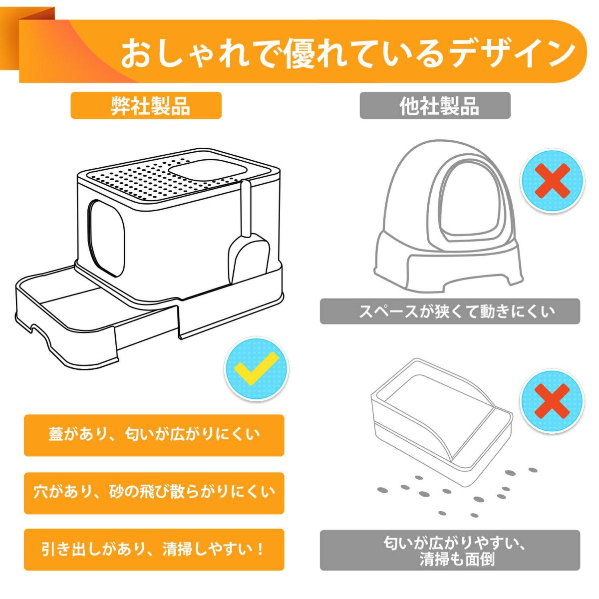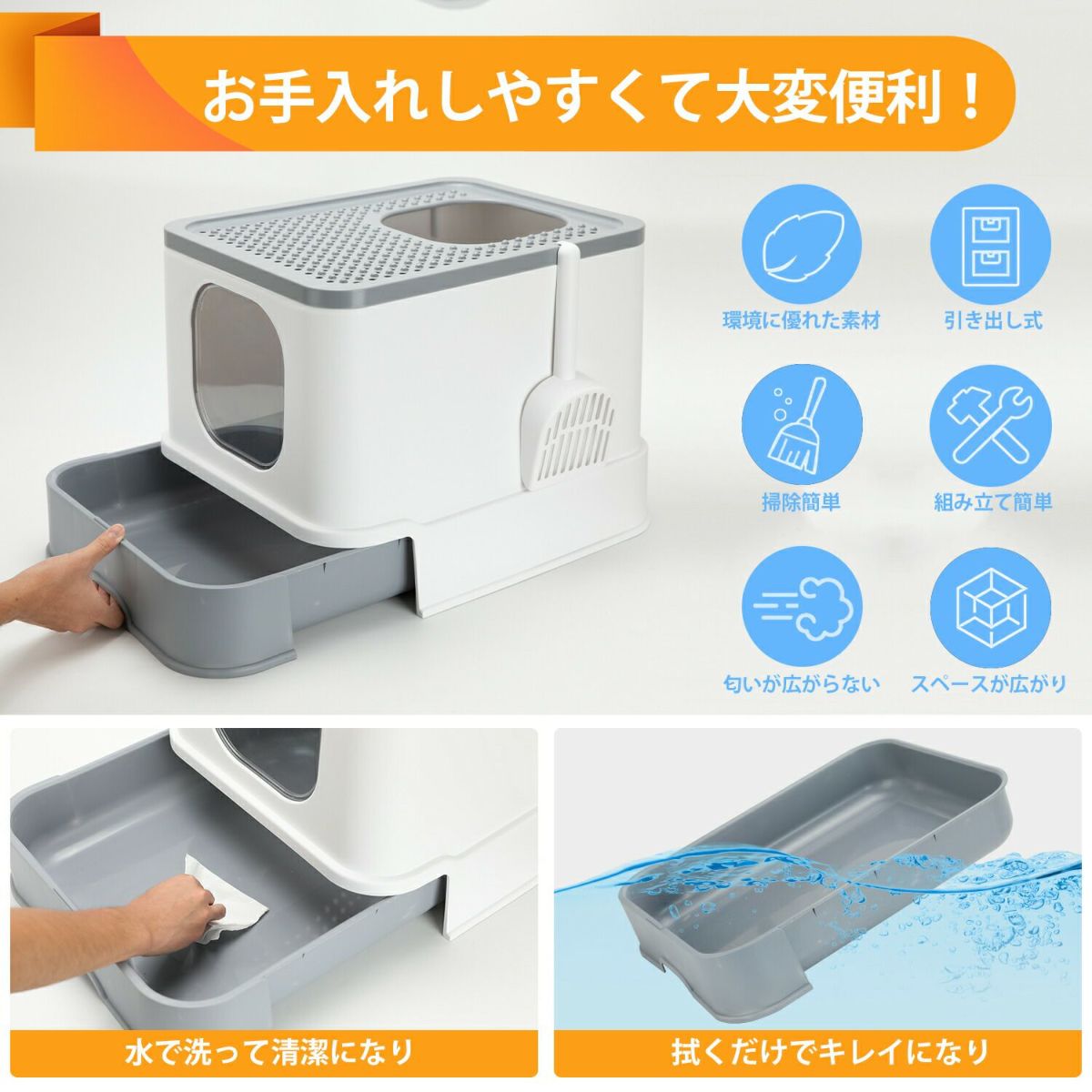 他の画像を見る 猫用トイレ本体 ネコトイレ 大容量 大型 砂の飛び散ら防止 掃除簡単 脱臭抗菌 組み立てしやすい 引き出し付き おしゃれ 人気 50*43*38cm 当店特別価格 ¥ 3,911 税込 カートに入れる お気に入りに登録する